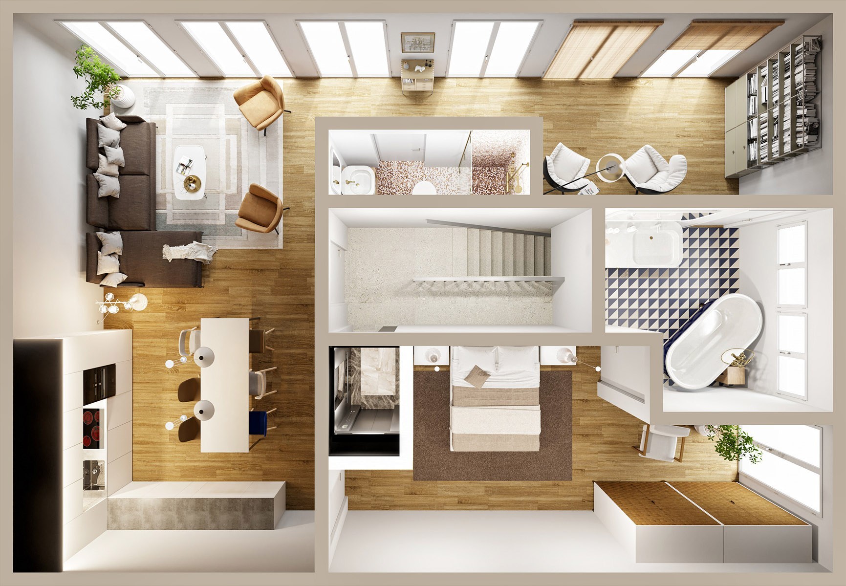 - Fotorealistische Ansicht von Grundrissen (Garten, Terrassen, Parkgaragen, etc.)
